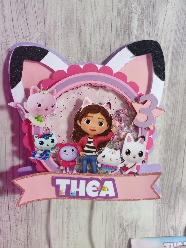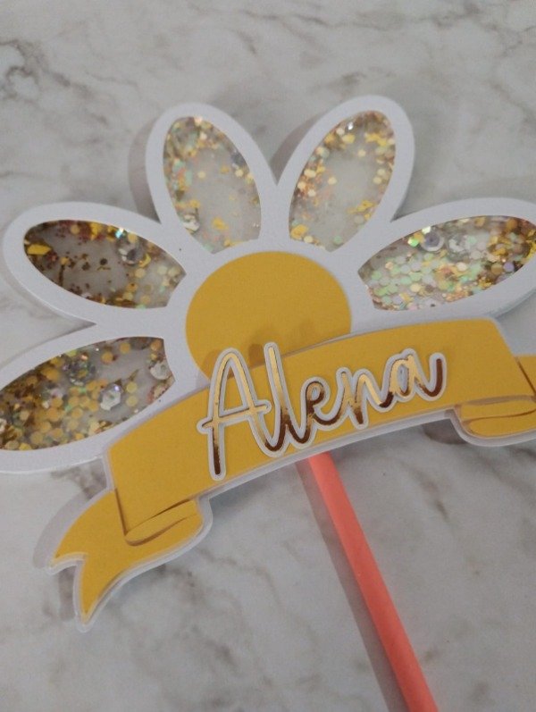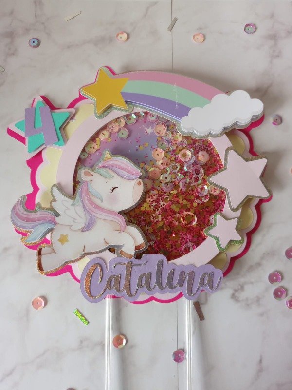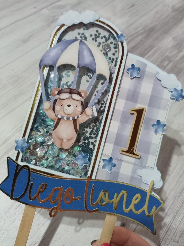 CAKE TOPPER SHAKER CON DETALLESA EN VARIAS CAPAS DE PAPEL PARA LOGRAR EL EFECTO DE RELIEVE.
