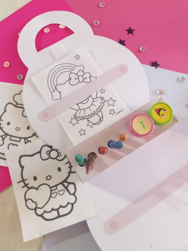 ESTILO 2 : MEDIDA 15cm x 8cm aprox ( dependiendo el diseño y la tematica) incluye 1 sellito 3 lapices de colores y 8 hojas para colorear